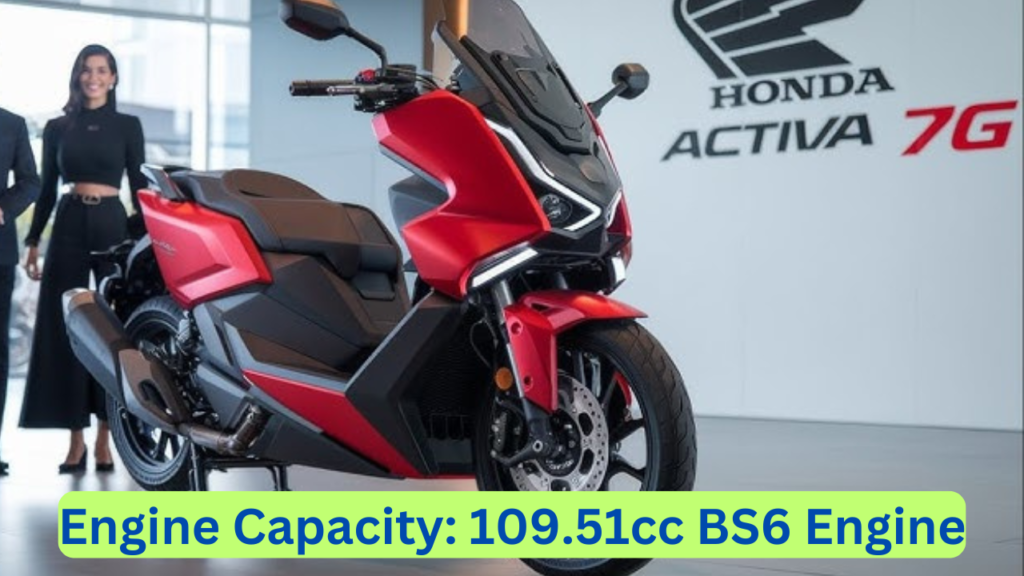 The Honda Activa 7G is powered by a 109.51cc, BS6-compliant engine that delivers 7.79 bhp and 8.84 Nm torque. The engine is designed to provide excellent fuel efficiency, smooth acceleration, and a refined riding experience, making it suitable for both city commutes and longer rides.