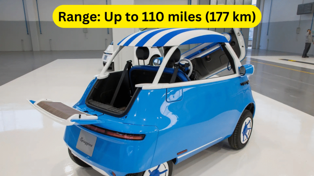 Don’t be fooled by its cute looks — the Spiaggina’s performance is perfectly suited for urban and coastal driving. Powered by a 17bhp electric motor, this compact EV can reach speeds of up to 56mph, which is more than enough for city streets and short highway sprints.