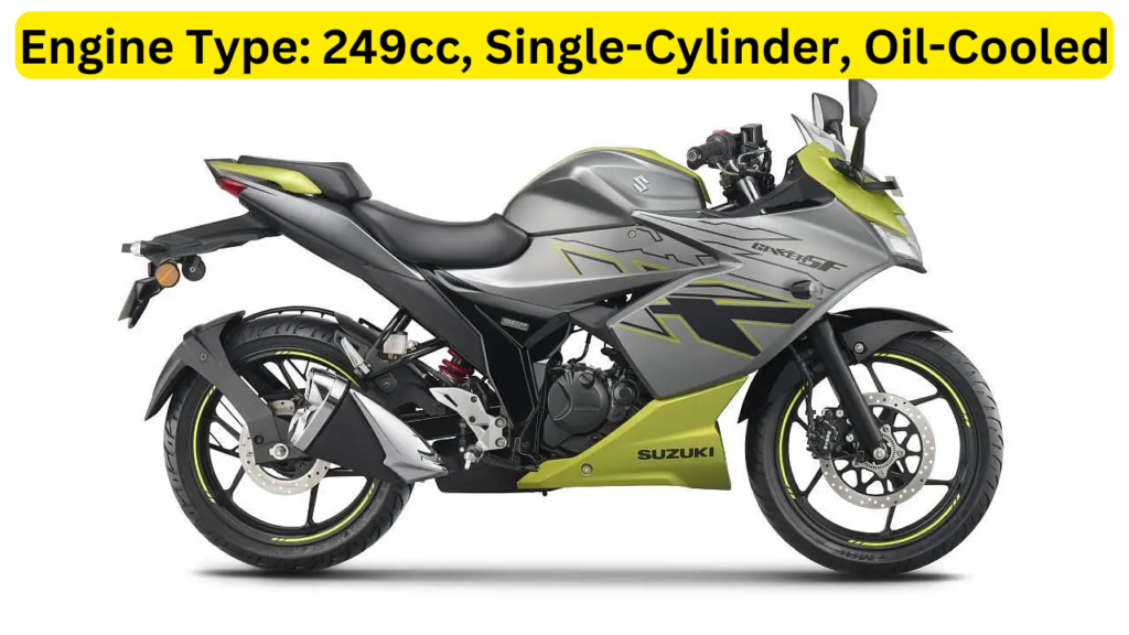 The Gixxer SF 250 is powered by a 249cc single-cylinder, oil-cooled engine. This engine is designed to deliver a balance of power and efficiency, producing a maximum power of 26 BHP and a peak torque of 22.5 Nm. The oil-cooling system ensures better thermal management, enhancing the engine’s durability and performance, especially during long rides or in hot weather conditions.